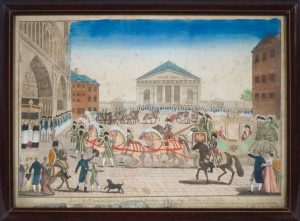 •Arrivée de Napoléon à N.-D. de Paris le 1er août 1807 (brunie, rouss., taches noires dans la légende au bord inf.).