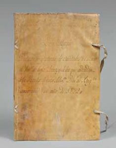 x 30 cm), vélin ivoire souple à lacs, titre à l’encre sur le premier plat (reliure de l’ époque). [3] + 140 ff. (dont quelques blancs préparaphés). Registre comptable de l’administration colombienne des tabacs pour l’année 1822, signé par l’administrateur principal et le comptable.