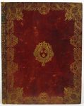 Reliure de l'époque : plein maroquin rouge, plats ornés d'un large encadrement de feuillages et palmettes incorporant le chiffre couronné de Louis XV, quatre grands cartouches armoriés aux coins et le grand supra-libros aux armes de France avec le collier de l'Ordre du Saint-Esprit au centre, dos à nerfs, fleuronné doré et orné du même chiffre, roul. dorées sur bordures intér., gardes de soie de couleur bleu-vert, tranches dor. (us. aux coins, mors et coiffes, griffes +/- importantes, qqs faibles taches).