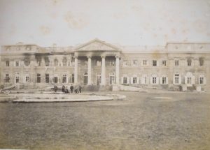 RARE SÉRIE de clichés en grand format du château complètement incendié un matin de mars 1879 (3 vues de l'extérieur et 4 vues des ruines intérieures).