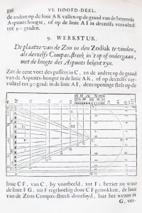 NUIS, Henrik Jaspar. 't Gebruik van het rectangulum catholicum geometrico-astronomicum ofte regthoekig algemein meet-en-ster-kundig plat [...]. Zwolle, Gerard Tydeman, 1686.
