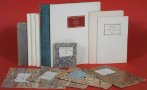 Rel. modernes, surtout des bradels plein papier (blanc en majorité, avec étiq. titrée sur cuir rouge sur le plat sup.).