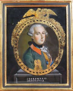 JOSEPH II, Empereur des Romains. Autriche, 18e s. PEINTURE SUR VERRE (églomisé),