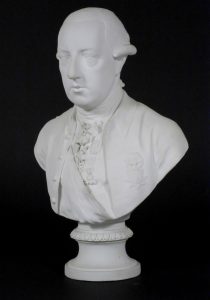 H. 29,7 cm (H. du buste : 23 cm), larg. 18 cm; marque en creux dans la pâte à l'intérieur du socle "23" et "42", marque en bleu dans la pâte (difficilement lisible : "A" avec double barre ?) (bout du nez lég. sali, l'agneau de la Toison d'or manque).