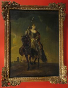 MARIE THÉRÈSE , "Roi" de HONGRIE, à cheval et tenant une épée levée. [Peu après 1741 ?]. HUILE sur toile,