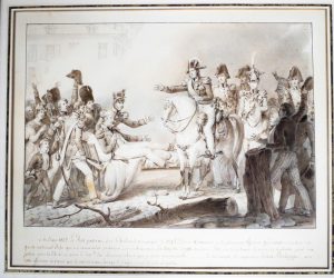 CHASSELAT, Charles (1782-1843). Louis Philippe et le Duc de Nemours à cheval rencontrant un garde national blessé, porté sur un brancard, le 6 juin 1832. DESSIN ORIGINAL,
