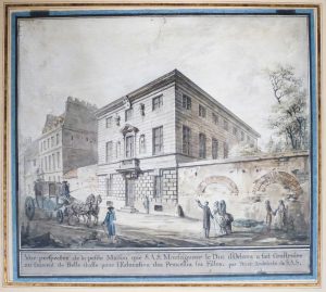 Le duc de Chartres y consenti et fit construire le pavillon par Bernard Poyet (1742-1804) à Saint-Germain, près du couvent des chanoinesses du Saint-Sépulchre, au 11bis rue Saint-Dominique (démoli en 1905).