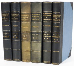 FORRER, Leonard. Biographical dictionary of medallists, coin-, gem-, and seal-engravings, mint-masters, &c. ancien and modern [...]. London, Spink & son, 1907 [- 1930].