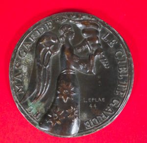 LEPLAE, Charles. " Tu m'as gardé, le ciel te garde". 1944. Médaille en bronze,