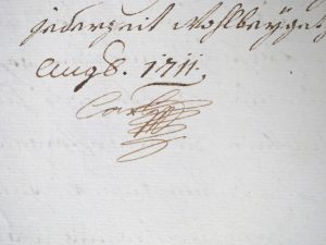 CHARLES III de HASBOURG (Vienne 1685-1740). Lettre autographe signée, en allemand, au Comte Philippe Ludwig von Sinzendorff à propos d'un traité de paix dans le cadre de la Guerre de succession d'Espagne. Barcelona, 31 août 1711.