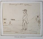 •(a). divers DESSINS de jeunesse découpés dans des albums dont un ayant appartenu à Ernest Quetelet, +/- 18 x 15 cm, figurant : le profil caricaturé d'Henri Delemer, professeur à l'Athénée de Bruxelles,- 7 croquis sur une feuille dédicacée "à l'ami Ernest",- un gamin,- "Isaure Quetelet, fille d'Adolphe, épouse de Paul Claeys".