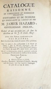 SAS, N.J.T. Catalogue raisonné de l'excellente et nombreuse collection d'estampes et de desseins qui composaient le cabinet de feu James Hazard, gentilhomme anglais [...] Bruxelles, Jos. Ermens, mercredi 15 avril 1789.