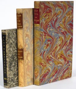 Prestigieuse collection de Jean Jadot, spécialiste des Pays-Bas autrichiens et numismate, centrée sur Charles de Lorraine, Marie-Thérèse d’Autriche, François Ier, Joseph II… et composée d’objets (bustes, calices, gobelets en cristal, peintures…), d’ouvrages, de dessins originaux et de médailles, d’un manuscrit inédit de Cobenzl relatant son voyage en France avec Joseph II, d’ouvrages du Prince de Ligne, etc. Nombreux ouvrages de littérature française essentiellement, illustrés par de grands artistes (Bécat, Decaris, Baudier, Elskamp, Collot, Maurice Denis et sess « Petites fleurs de saint François d’Assise »…), dans de belles reliures (signées Herbillon-Crombé, Semet & Plumelle, Clovis Lagadec et décorée par Lehaye…), ex. enrichis… Fables choisies de La Fontaine (276 pl. d’après J.-B. Oudry) Esoterica : Malleus maleficarum (éd. orig.), Tripus Aureus (1st ed.), ouvr. sur la sorcellerie et l’exorcisme, plusieurs en français (par Jean Bodin, Henry Boguet…) Sciences : botanique (Revue de l’horticulture belge et étrangère, 39 vol., +/- 743 chromolithographies), médecine (Leeuwenhoek, Palfijn), Descartes (De homine figuris), mathématiques, globe – Incunables (« Tractatus de virtutibus herbarum », rare 1re éd. en italien, 150 in texto), éditions du XVIe s. (Roland Furieux), Manuscrits : signature de Louis XIII, lettres patentes (une signée par Louis XIV à 10 ans), lettre de Magritte. Dessins originaux et estampes anciens, collection de 124 portraits d’après Van Dyck, dessins pour l’Énéide et les Géorgiques par le Baron Gérard et Girodet, Voyages : costumes italiens par Sgroppo, Suisse par Zurlauben, cartes postales figurant des théâtres et casinos (français surtout). Généalogie & noblesse, histoire, arts, religion, devotionalia (crucifix, rosaires…).