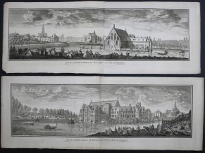 RARISSIME PENDANT et JEU COMPLET des deux grandes vues panoramiques du château de Tervuren, ancienne demeure des ducs de Brabant depuis le moyen âge et résidence d'été de Charles de Lorraine, détruite en 1781 sur ordre de l'empereur Joseph II.