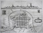 Plan et vue perspective d'après le relevé du mathématicien et géographe flamand Vaast de Plouich, extraite de l'édition néerlandaise du "Stedenboeck".