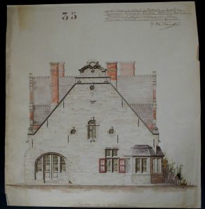 VERAART, G.C. Château d'Elewijt "dite le Steen de Rubens" (propriétaire Mr De Becker Remy) : dossier avec plans, élévations, coupes, relevés, projets de décoration intérieure etc. 1915-1917.