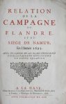 [ TRONCHIN DU BREUIL, Jean]. Relation de la campagne de Flandre, et du siège de Namur, en l'année 1695. Avec les cartes et les plans nécessaires pour la parfaite intelligence de cette relation. La Haye, Henry Van Bulderen, 1696.