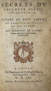 [ RUSCELLI, Girolamo (sous le pseud. de ALESSIO Piemontese). Les Secrets du seigneur Alexis Piémontois [...] [- Secrets, ou Receptes souveraines, bien expérimentées et approuvées par divers auteurs [...],- La seconde partie des Secrets...