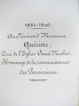 " 1884-1896. AU RÉVÉREND Monsieur QUIRINI, Curé de l'Église Saint Nicolas. Hommage de la reconnaissance des Paroissiens". Bruxelles, 20 novembre 1896.