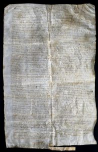 En latin, sur peau de vélin, 53 x 34 cm, notes au verso (plis, qqs taches).