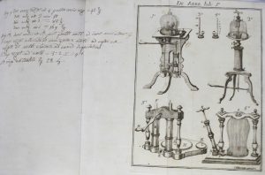 7 achetées chez l'éditeur louvaniste C.H. Becker, répertoriées par le catalogue d'exposition "Ex cathedra"(De Mechanica : grav. 1-3-4; De aere : grav. 1-4), et 1 avec FIGURES DESSINÉES À LA PLUME GRISE.