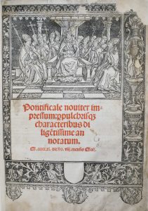 PONTIFICALE NOVITER IMPRESSUM: p[er] pulchrisqu[ue] characteribus dilige[n]tissime annotatum. [ Lyon, per Joannem Moylin alias de Cambray, expensis Ludovici Martini impressus], 1511.die v[er]o.viii.mensis maii.