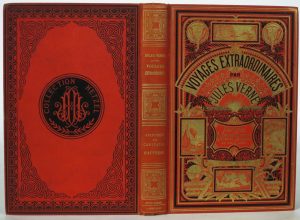 VERNE, Jules. 2 ouvrages gr. in-8°, cartonnages illustrés d'édition. Voyages et aventures du capitaine Hatteras. Les Anglais au Pôle nord - Le désert de glace. 150 vignettes par Riou. Paris, J. Hetzel (imprimerie Gauthier-Villars), [entre...