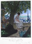 ENRICHI d'une AQUARELLE ORIGINALE, 16 x 13,5 cm, volante, non retenue, signée à l'encre dans le champ, dédicacée et signée "à Monsieur Achille Lefèbre, très amicalement", figurant l'héroïne assise sur le muret de sa maison surplombant le village.