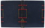 Gr. in-8°. Relié par Reine-Aimée : plein maroquin bleu marine, dos à 4 nerfs mosaïqués en maroq. grenat légèrement prolongés sur les plats et fermés par des filets dorés (décor identique inversé en gouttière), filet doré sur les coupes, doublures de reps moiré bleu marine serti de même maroq. et de filets dorés croisés aux angles ponctués de carrés de maroq. grenat, gardes de même reps, tête dorée, couv. et dos cons. (dos de la rel. lég. bruni, nerfs lég. frottés).