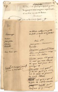 Eugène Moreau (pseudonyme d’Eugène Lemoine, 1806-1877), créée au théâtre du Palais-Royal le 31 décembre 1852 ; publiée par Michel Lévy [OC, t. III, p. 247] ; c’est la onzième (et dernière !) pièce écrite par Labiche en cette année 1852. L’action est sous Louis XV, à la campagne, chez Jean-Pierre (joué par Lacourière) qui vient d’épouser Simonne (Mlle Kleine) ; il vient de s’absenter pour surveiller le moulin de son cousin Paturin, parti à la guerre, et a laissé seules sa jeune sœur Louisette et sa femme. Survient le soldat Belrose, muni d’un billet de logement ; Louisette et Simonne échangent leurs rôles, Louisette se faisant passer pour la femme de Jean-Pierre ; mais quand Jean-Pierre revient, il reconnaît en Belrose le cousin Paturin qui épousera Louisette.{CR} Le manuscrit est pour la plus grande partie de la main de Labiche (les pages 1 à 5 et 25 à 52 sont entièrement autographes), il incorpore 18 pages (6-23) en copie ou de la main des collaborateurs, sur lesquelles il a porté des corrections et additions autographes.{CR} On joint le feuillet (déchiré) ayant enveloppé le rouleau, avec titre autographe.{CR}