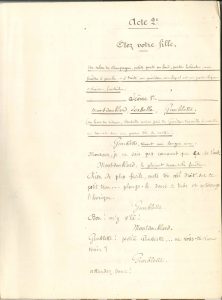 Eugène LABICHE. Manuscrit pour Ôtez votre fille, s’il vous plaît, [1854] ; cahier de 76 pages petit in-4.{CR} Cette comédie en deux actes mêlée de chant de Labiche et Marc-Michel (1812-1868) fut créée au théâtre du Palais-Royal le 24...