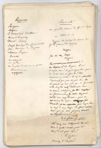Eugène LABICHE. Manuscrit d’Édouard Martin avec annotations autographes de Labiche pour Le Voyage de Monsieur Perrichon, [1860] ; 134 pages in-fol.{CR} Manuscrit de travail de cette célèbre comédie en 4 actes de Labiche et Édouard Martin...