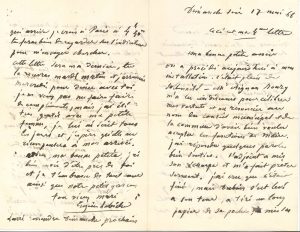 la Sologne (Adèle, née Hubert, s’était réfugiée chez ses parents à Guéret).{CR} 17 mai 1868. Relation de son installation comme maire de Souvigny : prestation de serment, discours élogieux par Aignan Bouzy au nom du conseil municipal, puis du brave Dubois qui « m’a cassé l’encensoir sur le nez d’une façon tellement embarrassante que j’aurais voulu être au fond de mes sapinières » ; puis séance du conseil, où tout le monde fume la pipe ; il a rendu comme maire visite au curé : « il m’a reçu comme le messie, j’ai profité de cela pour faire rétablir le service des bons de pain à l’homme qui était venu me voir l’autre jour et dont les enfants meurent de faim »... 16 octobre [1870]. Il a été réveillé aux cris de « voilà les Prussiens ! [...] une femme avait vu les uhlans à 3 kilomètres d’ici »... Il s’est rendu à la mairie, « entouré du vide le plus complet. J’avais pourtant fait désigner dans le conseil une commission de 4 membres [...]. C’est partout la même lâcheté »... Les prétendus uhlans étaient des francs-tireurs français. « Cette panique m’a fait faire à la maison une répétition de la peur, tout le monde tremblait ». Les Prussiens sont à Jargeau : « Je les attends un de ces jours. Pourvu qu’ils ne viennent pas trop matin, tu sais que je n’aime pas être réveillé de bonne heure et je serais de mauvaise humeur »... 24 octobre. Nouvelles rassurantes, après la visite de Léon Wallet et Roland, « venus en compagnie de 18 chasseurs d’Afrique se porter dans les sapinières qui bordent le chemin de la Fringale afin d’attendre les uhlans et les faire prisonniers. J’ai accompagné ces messieurs mais personne n’est venu. [...] On a envoyé de la troupe à Isdes pour défendre le village que les Prussiens avaient menacé de brûler. Il ne s’échappera pas, s’ils reviennent dans notre pays. [...] Si notre armée de la Loire pouvait se décider à bouger et frotter les Prussiens cela dégagerait le pays »... 8 novembre. Il ignore encore la majorité obtenue à Paris par le gouvernement provisoire : « On parle d’un armistice de 25 jours pour laisser faire les élections. Si ce bruit devient officiel, je partirai tout de suite pour aller vous chercher à Guéret [...] et si la guerre doit continuer, comme nous serons infailliblement envahis, vous repartirez pour Pau pour vous tenir le plus loin possible des bombes de l’ennemi »... Détails sur les officiers et une ordonnance qu’il a eus chez lui...{CR} On joint une petite L.A.S. écrite de Vittel (7 juillet 1875) au dos d’un menu d’hôtel : « Ton gros mari continue à aller très bien, les eaux ne lui font aucun effet apparent »... ; et une liste autographe d’« objets emportés à Vittel » en 1875 : articles de papeterie, vêtements et chaussures, articles de toilette, dictionnaire de poche, 2 volumes de L’Univers pittoresque, décorations, « quelques vieux journaux », revolver, argent... Plus 2 L.A.S. de Labiche à son ami Lemaître (Coubert et Souvigny 1880-1881) ; et une note autogr. de choses à faire à son régisseur (1887-1888).{CR}