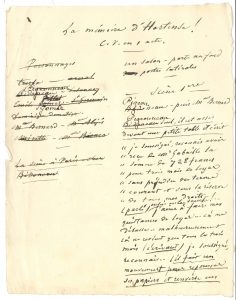 Eugène LABICHE. Manuscrit autographe, La Mémoire d’Hortense, [1872] ; [1]-68 pages petit in-4.{CR} Cette comédie en un acte de Labiche et Alfred Delacour (pseudonyme d’Alfred Dartigue, 1817-1883) fut créée au théâtre des Variétés le...