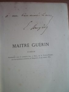 (qqs lég. rousseurs).{CR} Éditions originales de ces quatre comédies en prose, avec envois autographes à sa maîtresse Laure Lambert, dite Laure Crinel, actrice du Palais-Royal puis du Gymnase, qu’il épousera à Rome en 1873.{CR} Les Effrontés : « à ma chère Laure Emile » ; Le Fils de Giboyer : « à ma chère et bonne amie » ; Maître Guérin : « à ma bien aimée Laure E. Augier » ; La Contagion : « à mon amie E. Augier ».{CR} On joint un volume rassemblant les deux pièces Madame Caverlet et Les Fourchambault (Calmann Lévy, 1876 et 1878), éditions originales, rares exemplaires sur grand papier de Hollande (le 1er non justifié, le 2e n° 3 sur 20), en un vol. in-8 non rogné en reliure d’époque demi-maroquin lie de vin à coins ; plus les Œuvres diverses (Calmann Lévy, 1878, demi-chagrin vert, dos orné).{CR}
