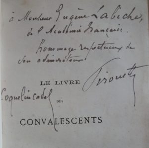 autographe sur le faux-titre : « à Monsieur Eugène Labiche, de l’Académie Française, hommage respectueux de son admirateur Pirouette Coquelin Cadet ».{CR}