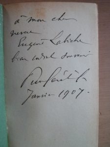 reliures de l’époque demi-chagrin vert, têtes dorées, couv. conservées.{CR} Éditions originales, avec envois autographes : « à mon cher neveu Eugène Labiche bien cordial souvenir Paul Déroulède Janvier 1907 » ; « à mon grand neveu Eugène Labiche bien affectueusement Paul Déroulède 21 Janv. 1907 ».{CR}