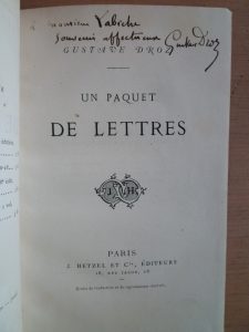 Gustave DROZ. Un paquet de lettres (Paris, J. Hetzel et Cie, [1870]) ; in-12, reliure de l’époque demi-chagrin bleu, dos orné (dos passé).{CR} Édition originale, avec envoi autographe sur la page de titre : « à Monsieur Labiche souvenir...