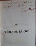 affectueux Gustave Droz ».{CR} On joint : Emmanuel Gonzalès, Les Frères de la Côte (Paris, Arnauld de Vresse, 1856) ; in-12, demi-basane brune, dos orné (cuir un peu rongé sur le plat inf.), édition originale avec envoi autographe (la signature un peu rognée par le relieur) : « A mon cher et spirituel ami Eugène Labiche son affect. Emm. Gonza[lès] ».{CR}