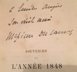 Maxime DU CAMP. Souvenirs de l’année 1848 (Paris, Librairie Hachette, 1876), in-12 ; Souvenirs littéraires (Paris, Librairie Hachette, 1882-1883), 2 vol. in-8 ; reliures de l’époque demi-chagrin vert.{CR} Éditions originales, avec envois...