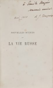 Édition originale française, avec envoi autographe sur le faux-titre : « à Emile Augier souvenir amical de I. Tourguéneff. Paris 1863 ».{CR}