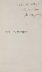 Ivan TOURGUENIEV. Terres vierges. Deuxième édition (Paris, J. Hetzel et Cie, [1877]) ; in-12, reliure de l’époque demi-percaline rouge (légères rousseurs).{CR} Deuxième édition française, avec envoi autographe sur le faux-titre :...