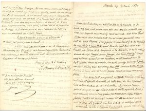 Jules Barbey d’Aurevilly. L.A.S., Paris 29 septembre 1843, à Guillaume Trébutien ; 4 pages in-8.{CR} Très belle et longue lettre à son ami Trébutien, au sujet de son poème en prose La Bague d’Annibal, son premier roman L’Amour...
