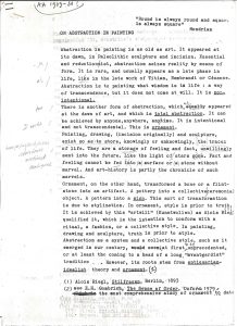 Samuel BECKETT. Corrections autographes sur la photocopie d’un tapuscrit du peintre Avigdor Arikha (1929-2010), On Abstraction in painting, [1981] ; 9 pages in-fol. en anglais.{CR} Nombreuses corrections et additions autographes au crayon dans...