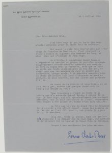Edmonde CHARLES-ROUX (1920-2016) journaliste, romancière et biographe ; elle fut l’épouse de Gaston Defferre. L.S. « Edmonde Charles-Roux », Marseille 6 juillet 1984, à Léon-Gabriel Gros ; 1 page in-fol. à son adresse.{CR} Au sujet du...