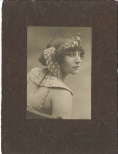 [COLETTE]. 2 photographies, [1906 et 1907] ; 19 x 10 cm montée sur carte, et 14,3 x 10 cm montée sur carte brune à la marque du photographe Harry’s.{CR} Portait de Colette en pied, dans le costume de Paniska, dans la pantomime Pan de Charles...