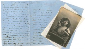 [COLETTE]. POLAIRE (1887-1939) actrice, créatrice du rôle de Claudine au théâtre. 3 L.A.S., Villa Claudine à Agay et Paris 1906-1907 et s.d. ; 4 pages in-8 à son adresse.{CR} Au sujet de la pièce Mademoiselle d’Orléans, qu’elle doit...