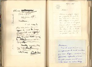 [Hippolyte DEVILLERS, dit Jean ROLLE (vers 1850-1907) journaliste et écrivain]. 2 manuscrits autographes signés, et plus de 50 L.A.S. et 15 cartes de visite autographes (ou a.s.), et divers documents, 1907-1908, à sa veuve ; le tout monté dans...
