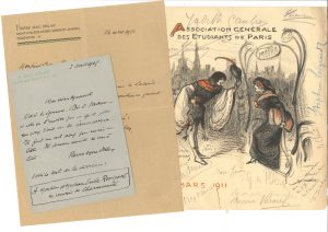 pour Chas Laborde), Roger Peyrefitte (1970, sur son dernier livre Des Français). Couverture d’une plaquette de l’Association générale des Étudiants de Paris, 3 mars 1911 (illustrée par Lucien Métivet), signée par ce dernier et par quinze autres personnalités (Roland Bonaparte, Jane Catulle-Mendès, Judith Gautier, Madeleine Lemaire, Stéphen Liégeard, Séverine… ; défauts).{CR}
