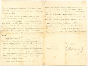 écrire, demandant quel souvenir elle a gardé de leur dernière soirée, « charmante pour moi – puisqu’au milieu de toutes nos discussions théologico-politiques, mon cœur a eu la joie de rester deux heures à genoux devant vous – quant à moi je l’ai mise à part dans mes bonnes soirées, dans mes soirées d’orgueil, dans mes soirées de fierté. Vous êtes une véritable Napoléon, chère Princesse. Beauté, grâce, intelligence ardente, cœur tendre et ferme à la fois vous avez tout ce que Dieu peut donner ; pourquoi ne sommes nous pas dans un pays où comme en Angleterre, comme en Suède, comme en Espagne, les femmes règnent – quel grand et charmant Roi vous nous feriez, et comme nous serions tous à vos genoux »... Il intercède ensuite auprès de cet « impérial génie », afin de faire obtenir la croix de la Légion d’honneur à son ami le poète belge André Van Hasselt (1806-1874), « inspecteur des Écoles Normales de Belgique ». Aussi joint-il à cette lettre un volume de poésies de ce dernier, « trois pièces de ce volume, toutes trois sur Napoléon, sont marquées par moi. Je vous prie de les lire, vous verrez qu’elles pourraient être signées de nos plus illustres noms ». Il explique pourquoi il tient tant à cette décoration, « une de ces dettes de reconnaissance qu’on ne paie pas avec de simples paroles – M. Van Hasselth sait l’allemand, le hollandais, le flamand, les idiomes slaves – et met toute une science à ma disposition et me tire de toute cette terre étrangère des lingots d’or avec lesquels je fais tout simplement, pauvre orfèvre que je suis, des bagues, des colliers, et des boucles d’oreilles »...{CR}
